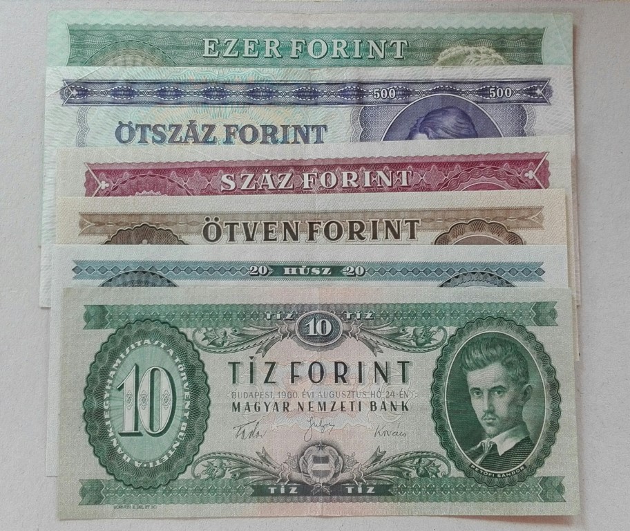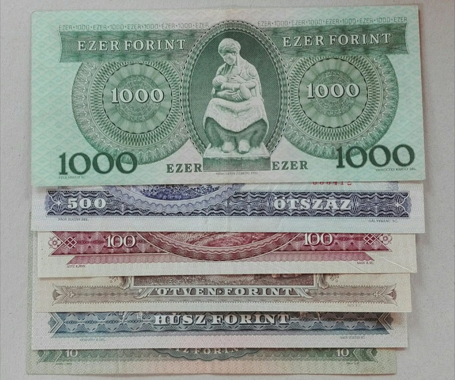 1000 , 500 , 100 , 50 , 20 , 10 forint sor (aUNC-XF)