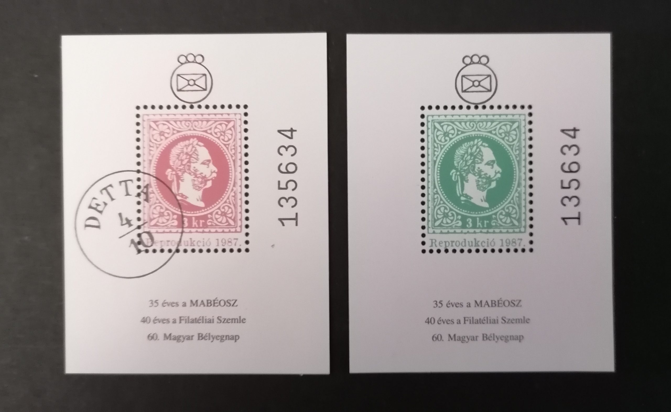 1987. Jubileumi emlékív pár azonos sorszámmal